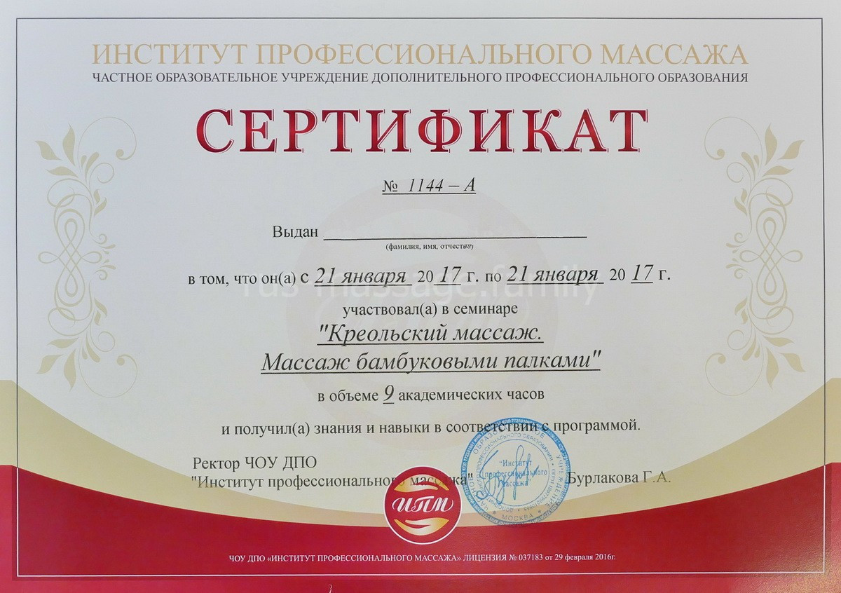 - креольский массаж (имеется СЕРТИФИКАТ)